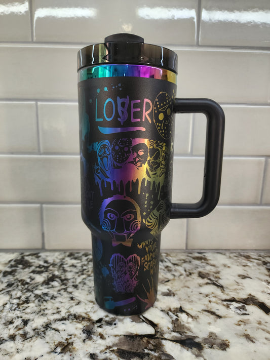 Halloween Horror Characters Themed Engraved 40oz Tumbler | Limited Iridescent Color