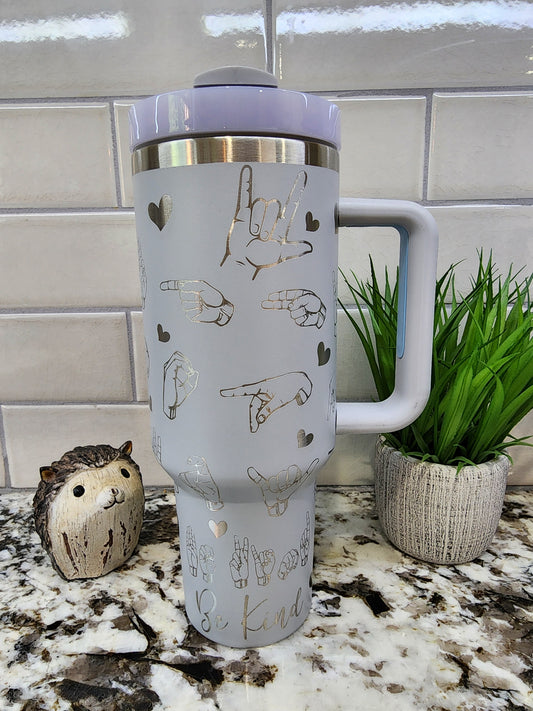 40oz Laser Engraved Tumbler with ASL Theme, Custom Insulated Tumbler for Hot and Cold Drinks, Personalized Sign Language Tumbler