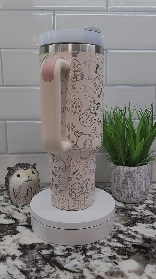 40oz Laser Engraved French Bulldog Tumbler , Personalized With Pups name