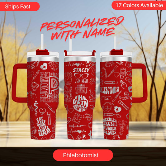 Phlebotomist Tumbler 40oz, Custom Laser Engraved Mug, Vein Whisperer Gift, Funny Medical Cup, Personalized Tumbler with Handle, Lab Tech