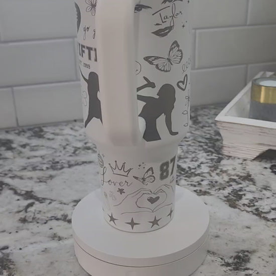 Introducing our exclusive 40oz Laser Engraved Tumbler, adorned with a meticulously designed Taylor Swift-inspired pattern, perfect for fans looking to showcase their admiration for the iconic artist in style. This durable, stainless steel tumbler features a double-walled insulation to keep your drinks at the perfect temperature, whether hot or cold, for hours. Each tumbler is skillfully laser-engraved with intricate details celebrating Taylor Swift's unforgettable lyrics and motifs, making it not just a beverage holder but a piece of art. Ideal for everyday use, this tumbler is a must-have accessory for Swifties wishing to keep their favorite tunes close while on the go. Eco-friendly and stylish, it's the perfect gift for yourself or the Taylor Swift enthusiast in your life, promising to bring a little bit of sparkle to daily hydration.