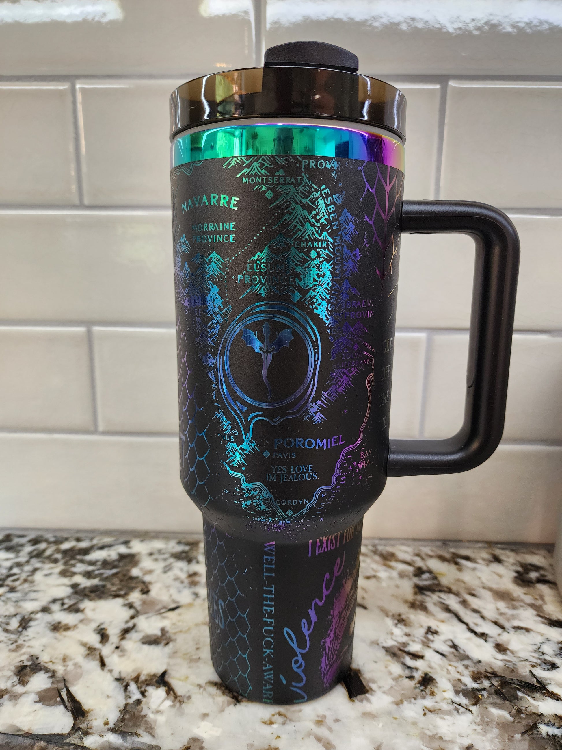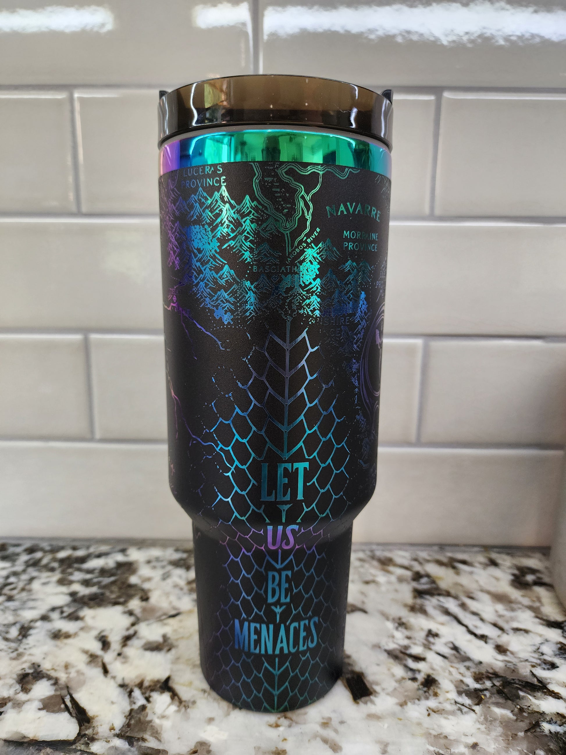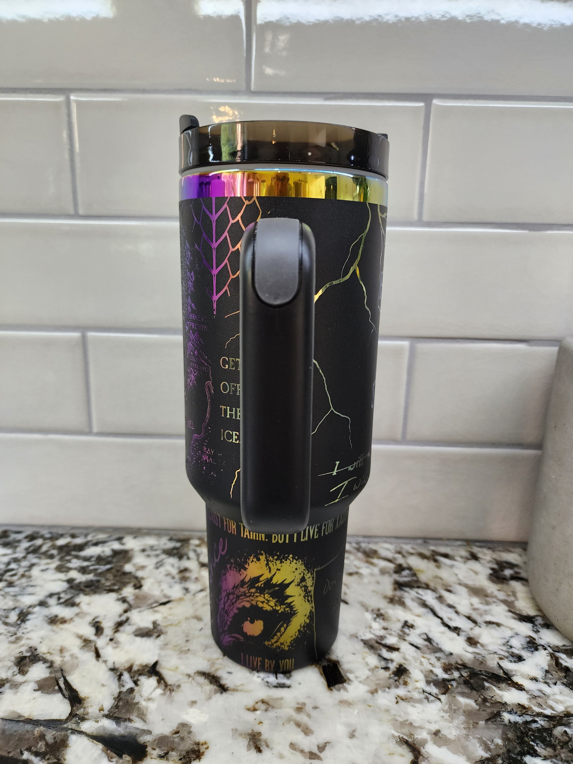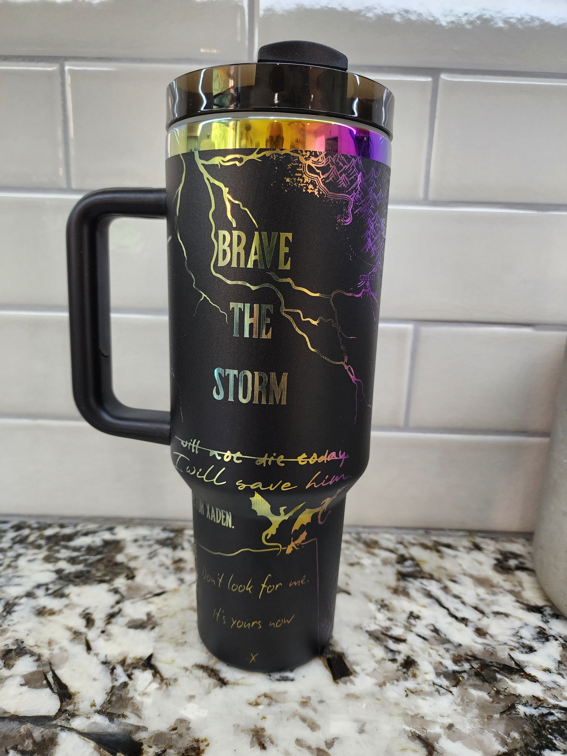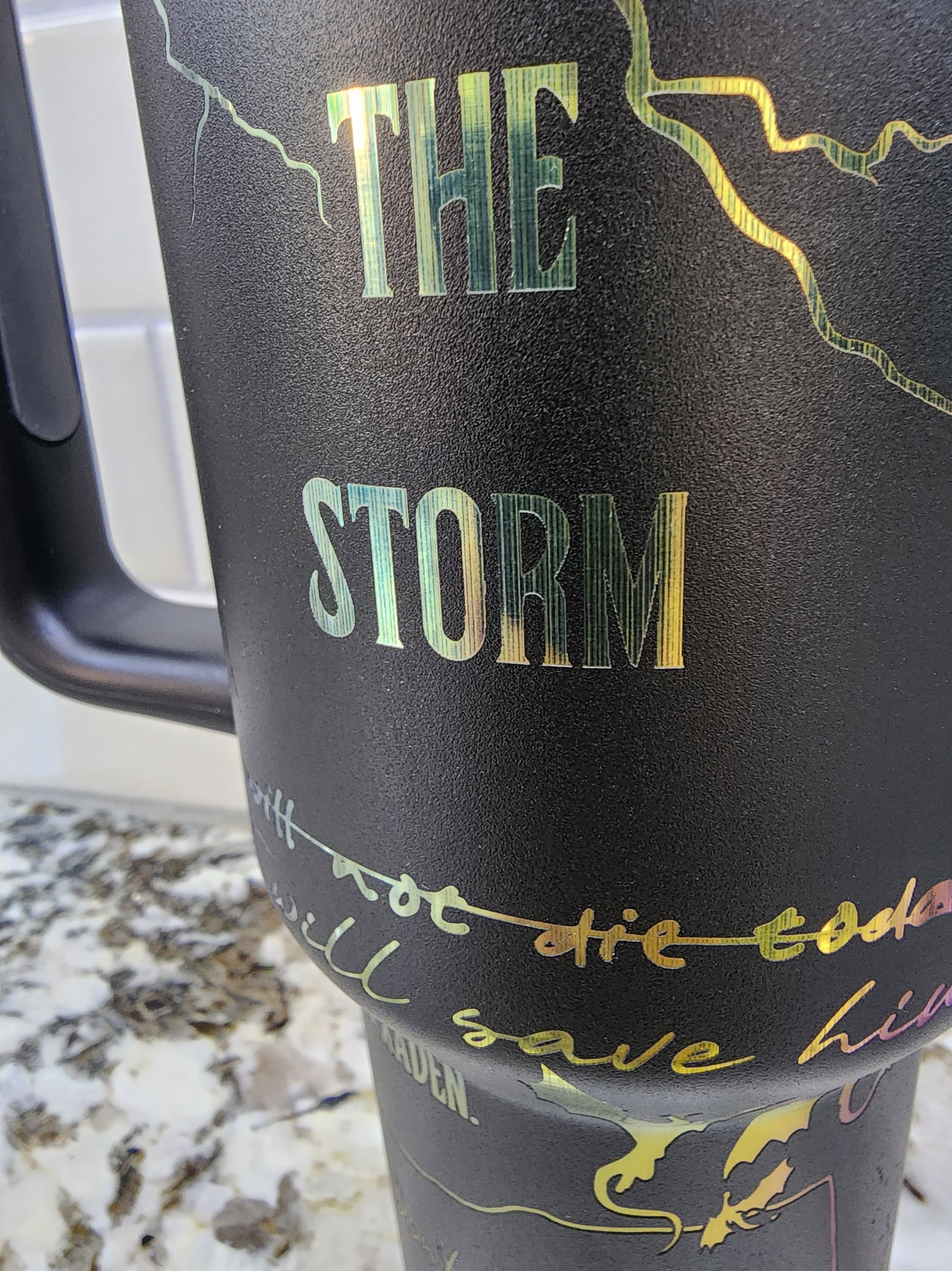 40oz Iridescent Black Onyx Storm Tumbler . Some areas were engraved a little too hot and left minor lines, most won't even notice but I do.