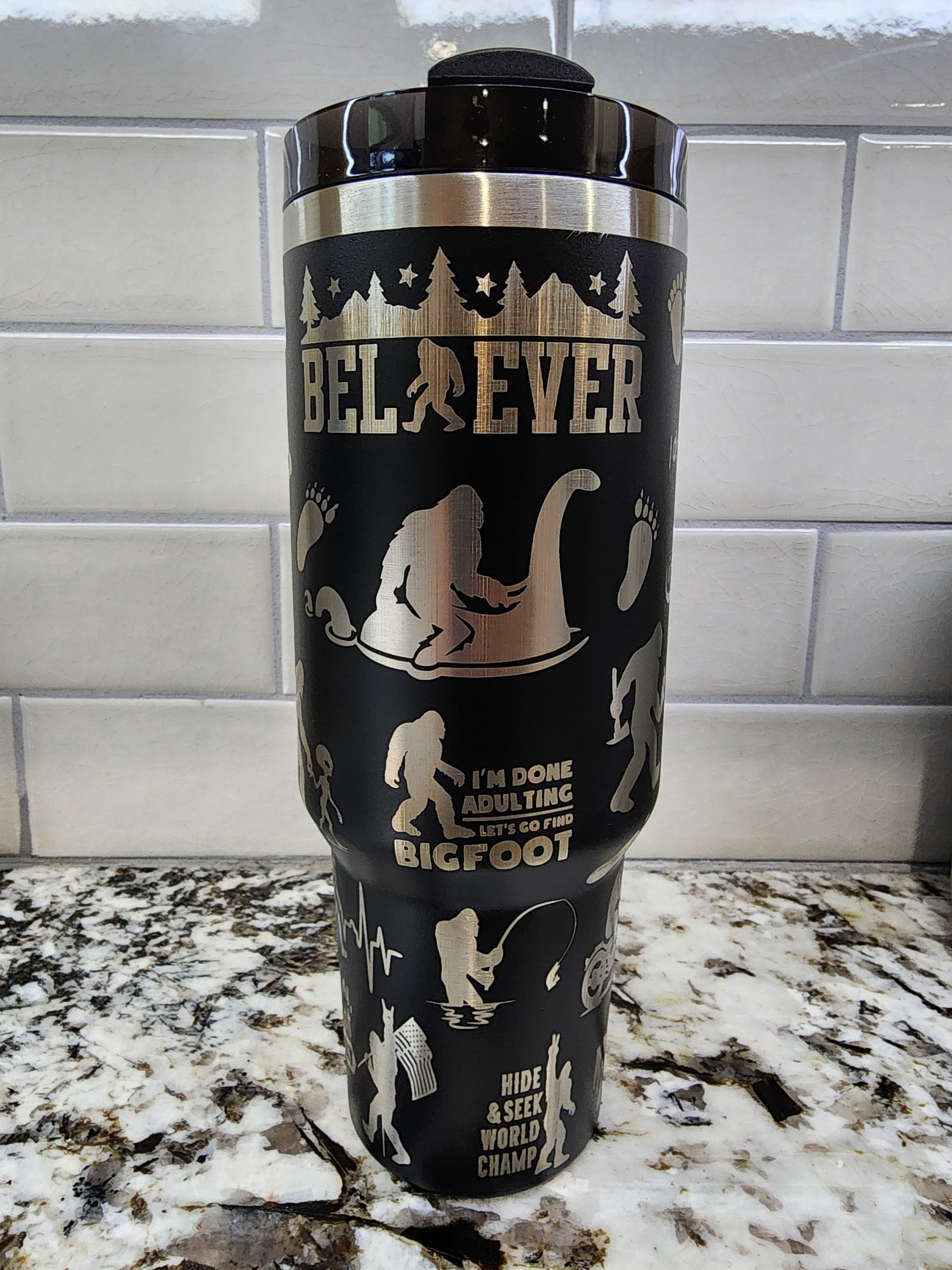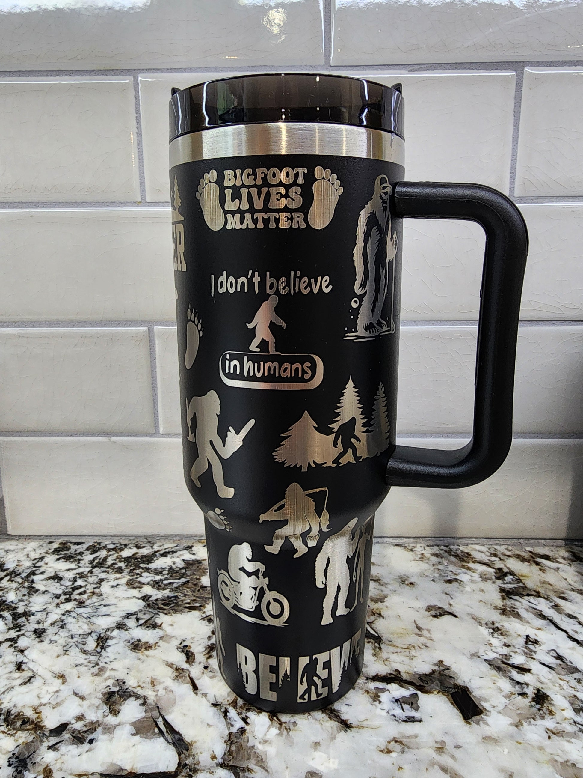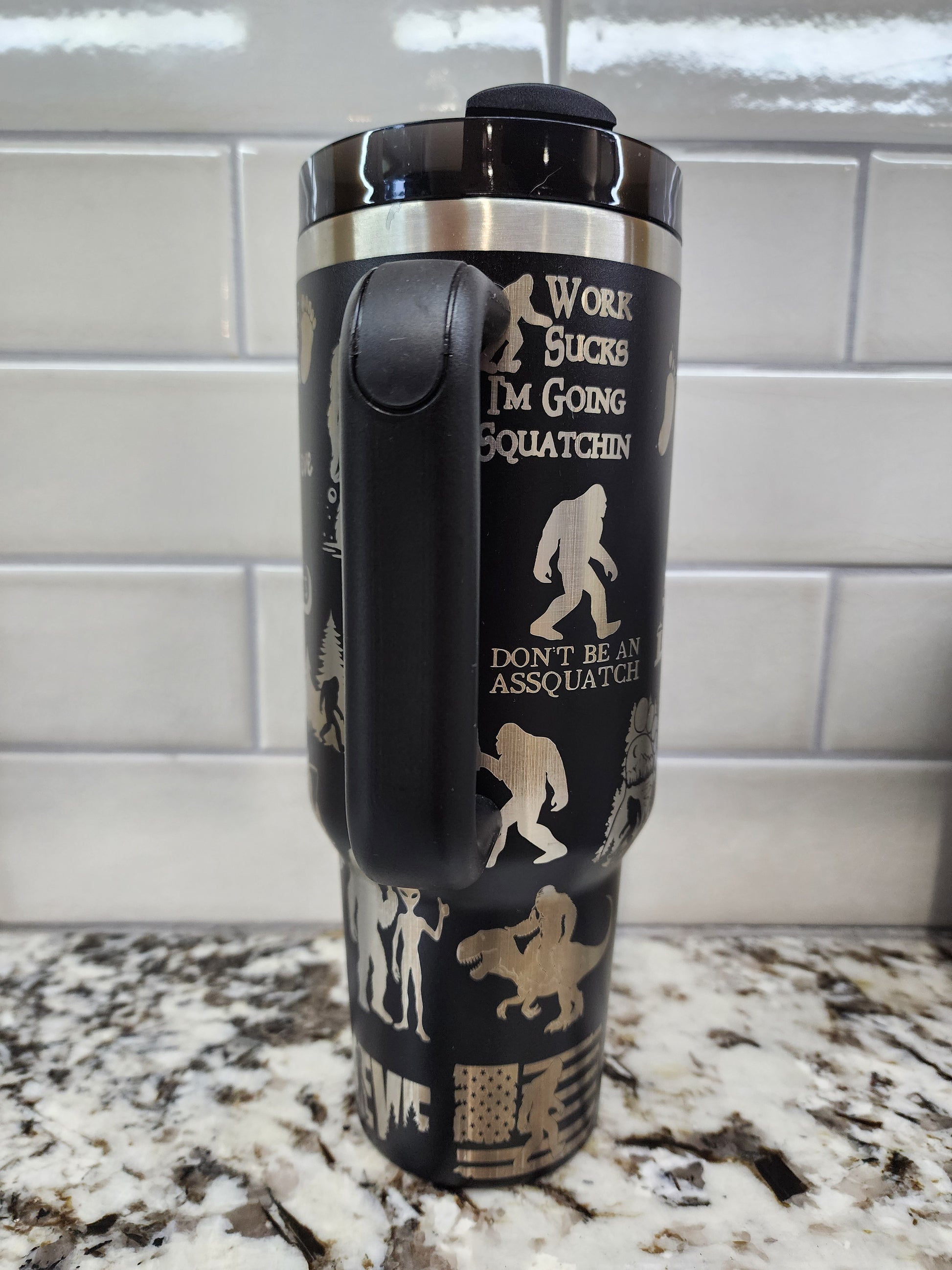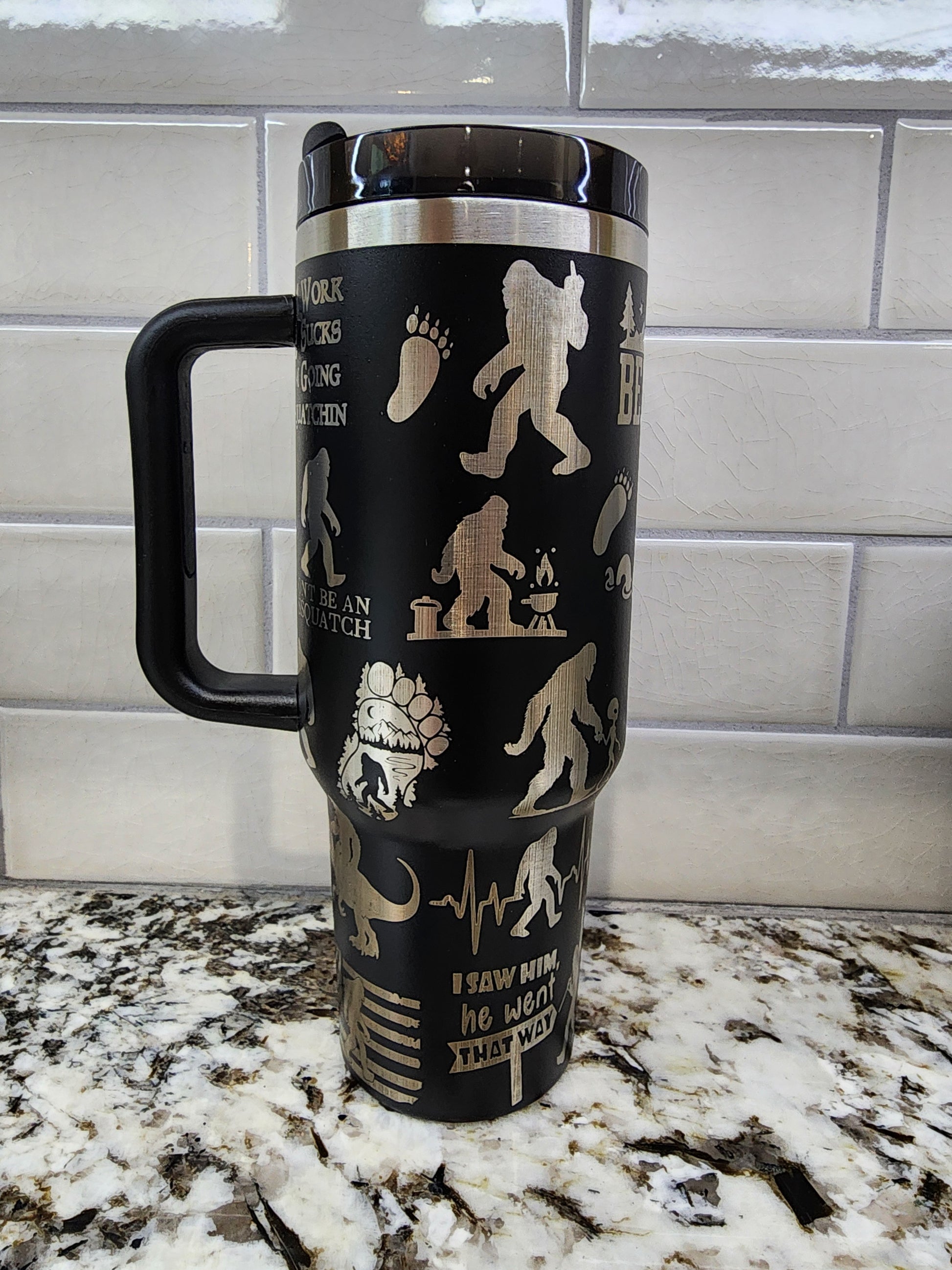 Bigfoot Sasquatch Themed Engraved 40oz Tumbler with Funny Quote | Custom Insulated Travel Mug | Unique Sasquatch Lover Gift