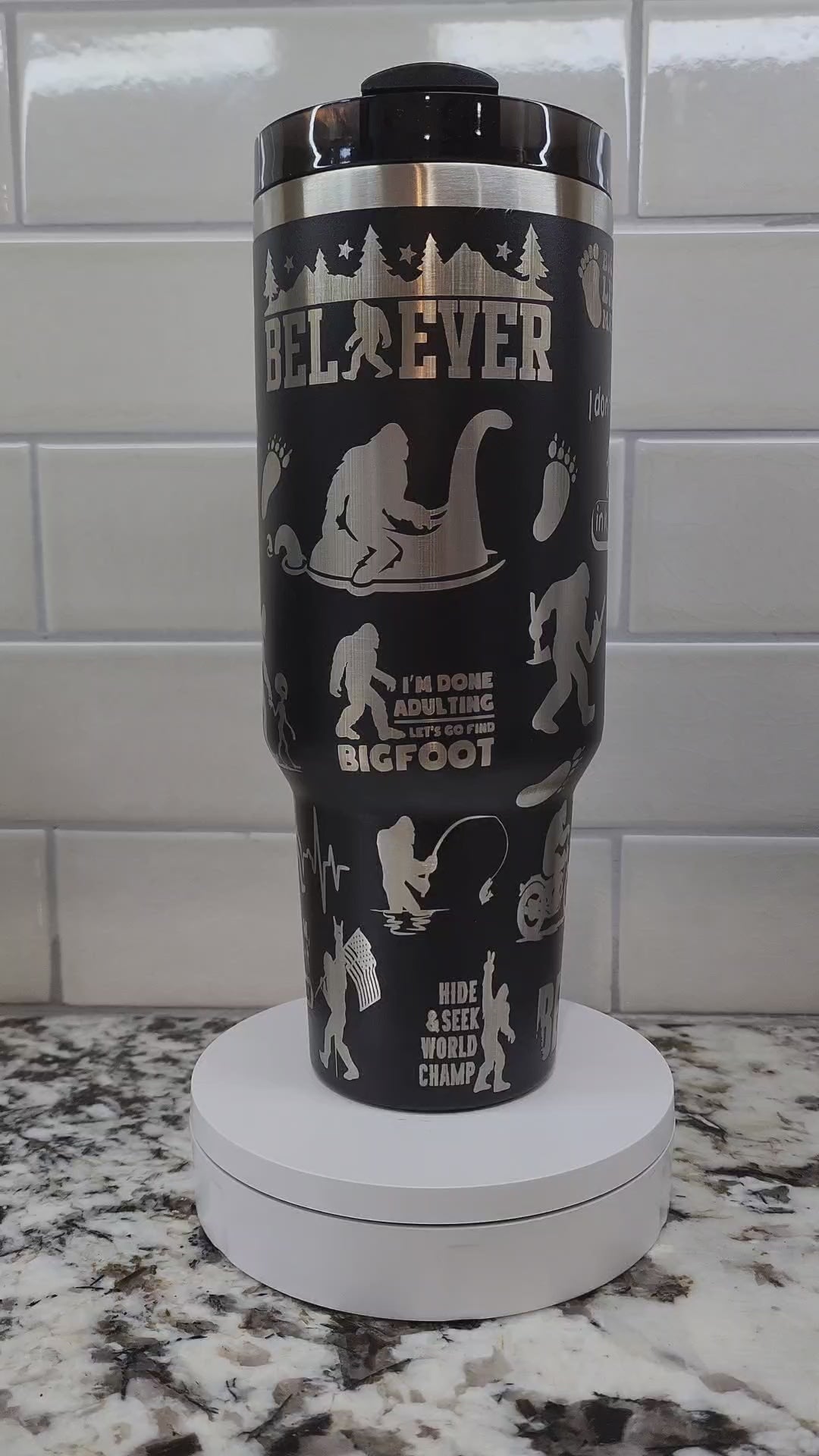 Get ready to make your friends laugh with our Bigfoot Themed Engraved 40oz Tumbler, featuring a hilarious quote that celebrates the elusive Sasquatch. This custom insulated travel mug is the perfect gift for Bigfoot enthusiasts and anyone who enjoys a good laugh.