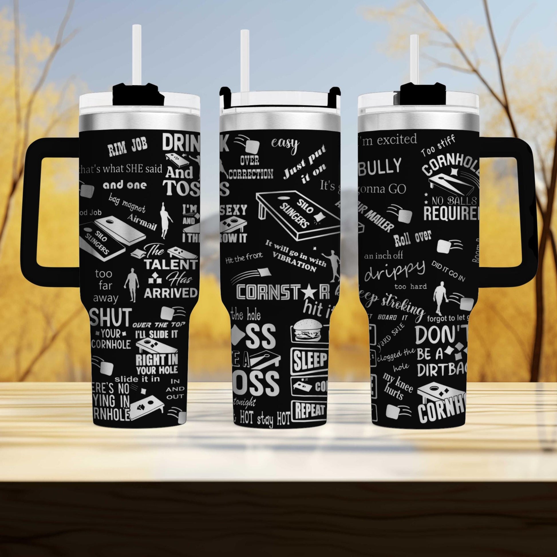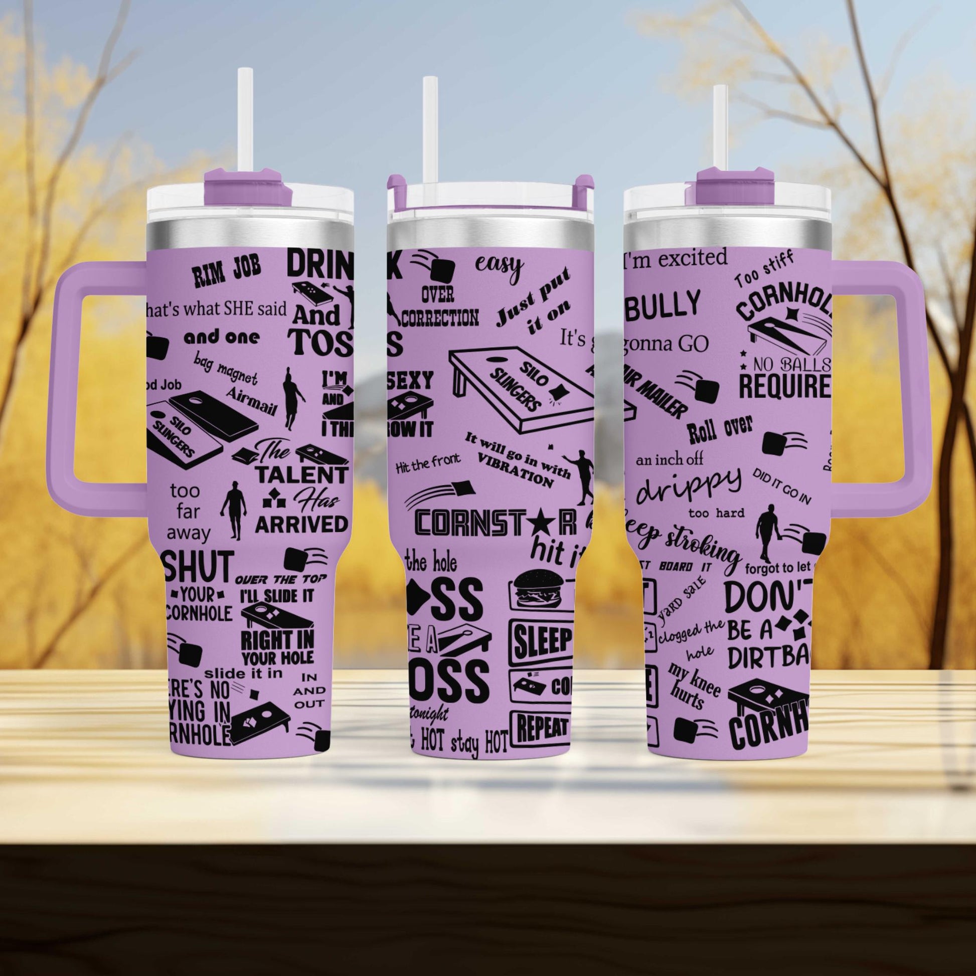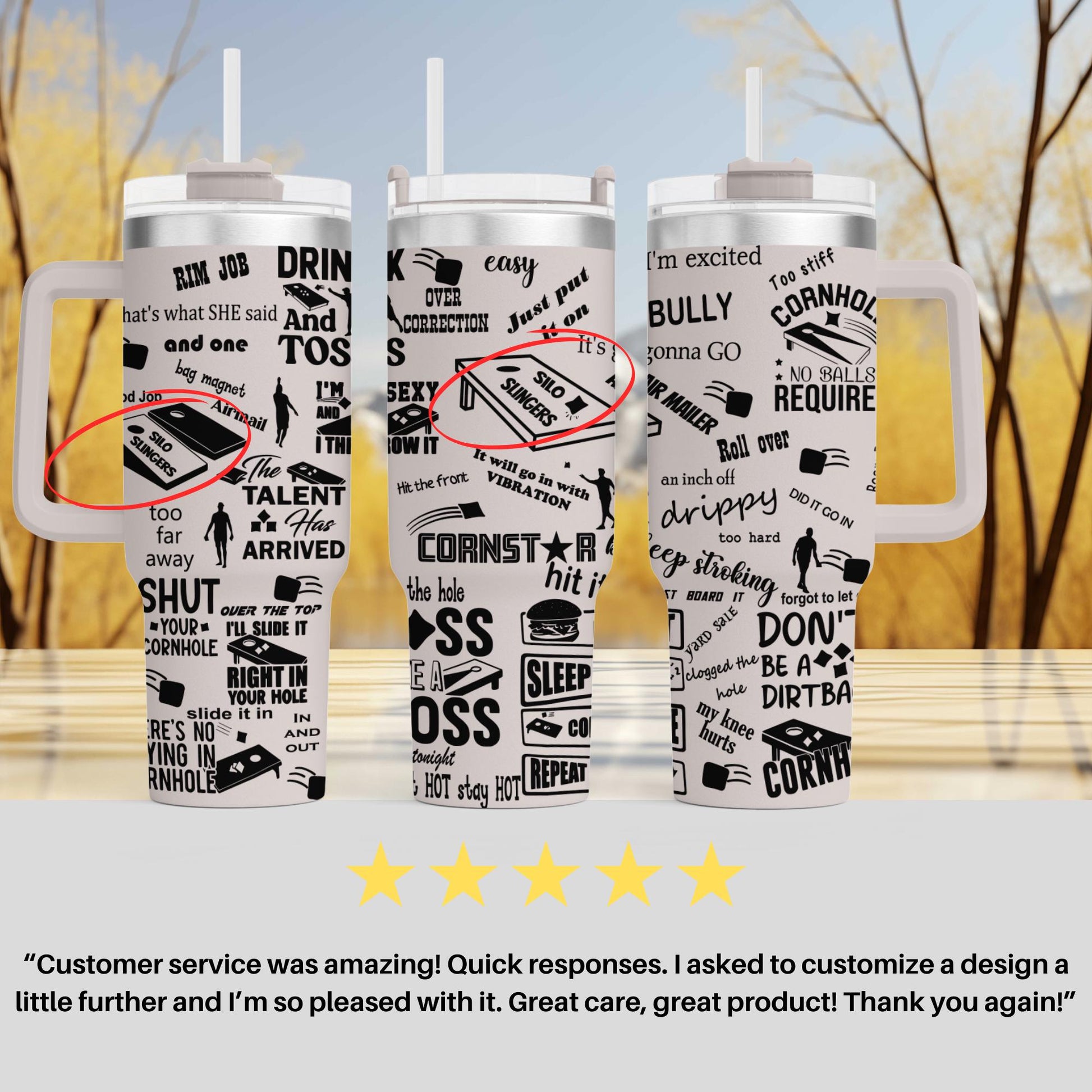 Cornhole 40oz Tumbler | Personalized Custom Engraved With Team Name | Tumbler with Lid & Straw | Laser Engraved Gift for Cornhole Lovers