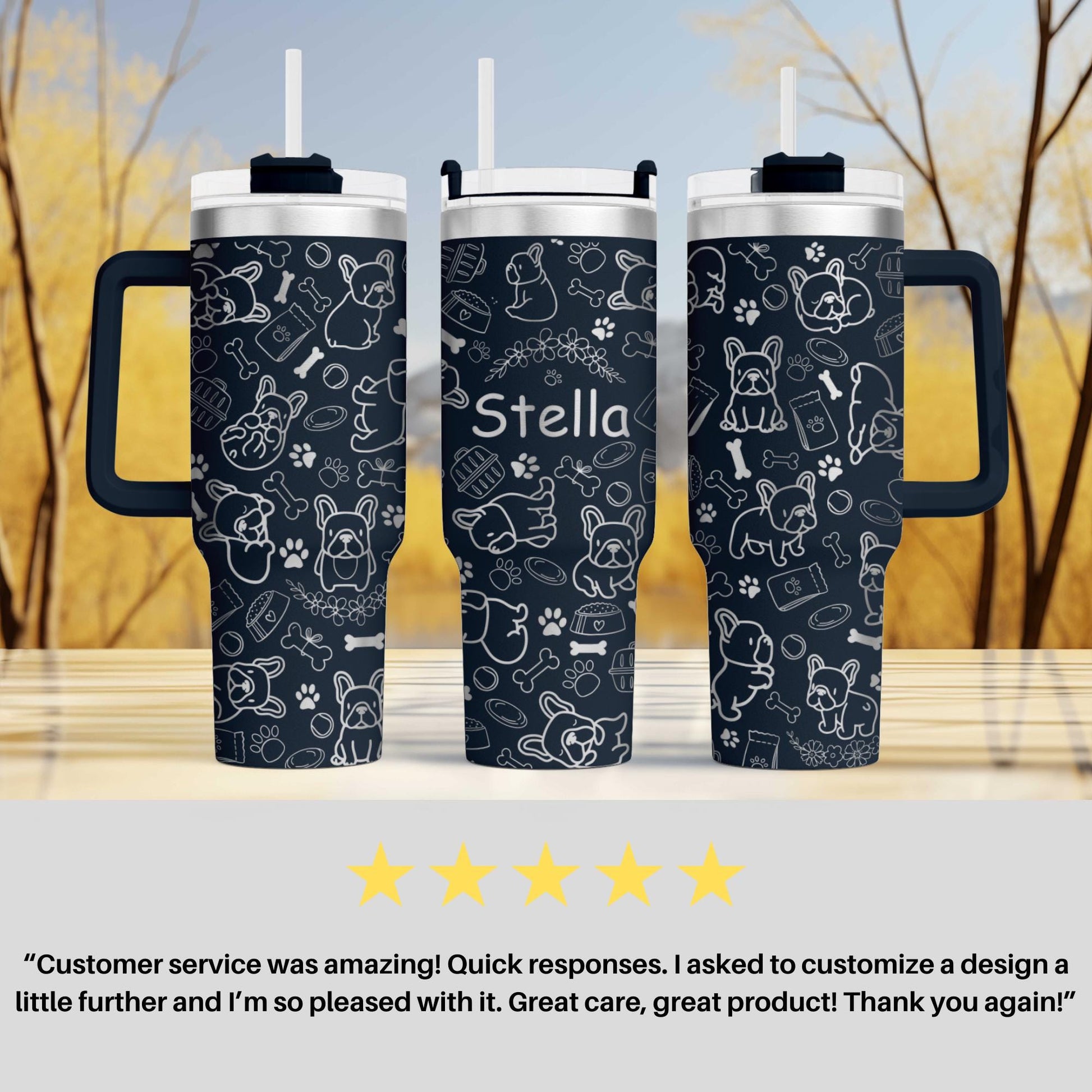 French Bulldog Personalized Tumbler - 40oz Cup with Custom Pup's Name - Laser Engraved Pet Lover Gift