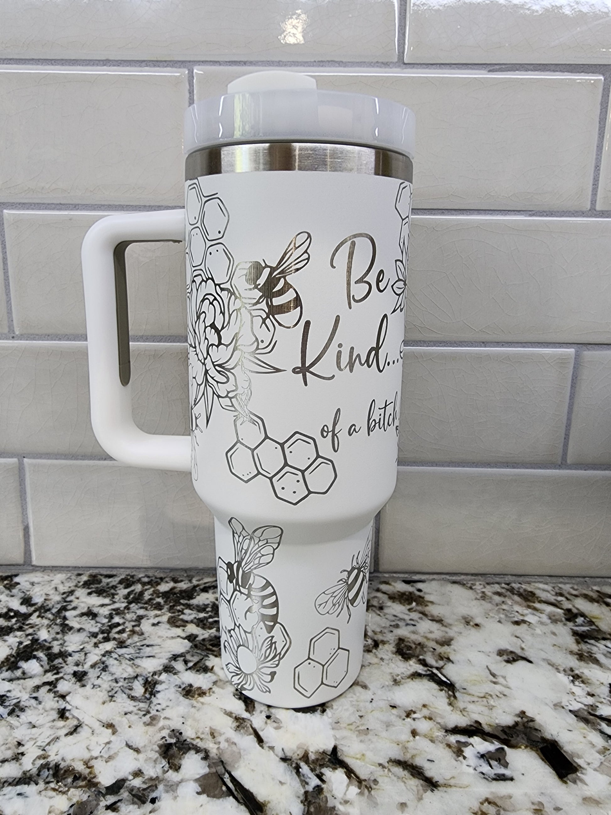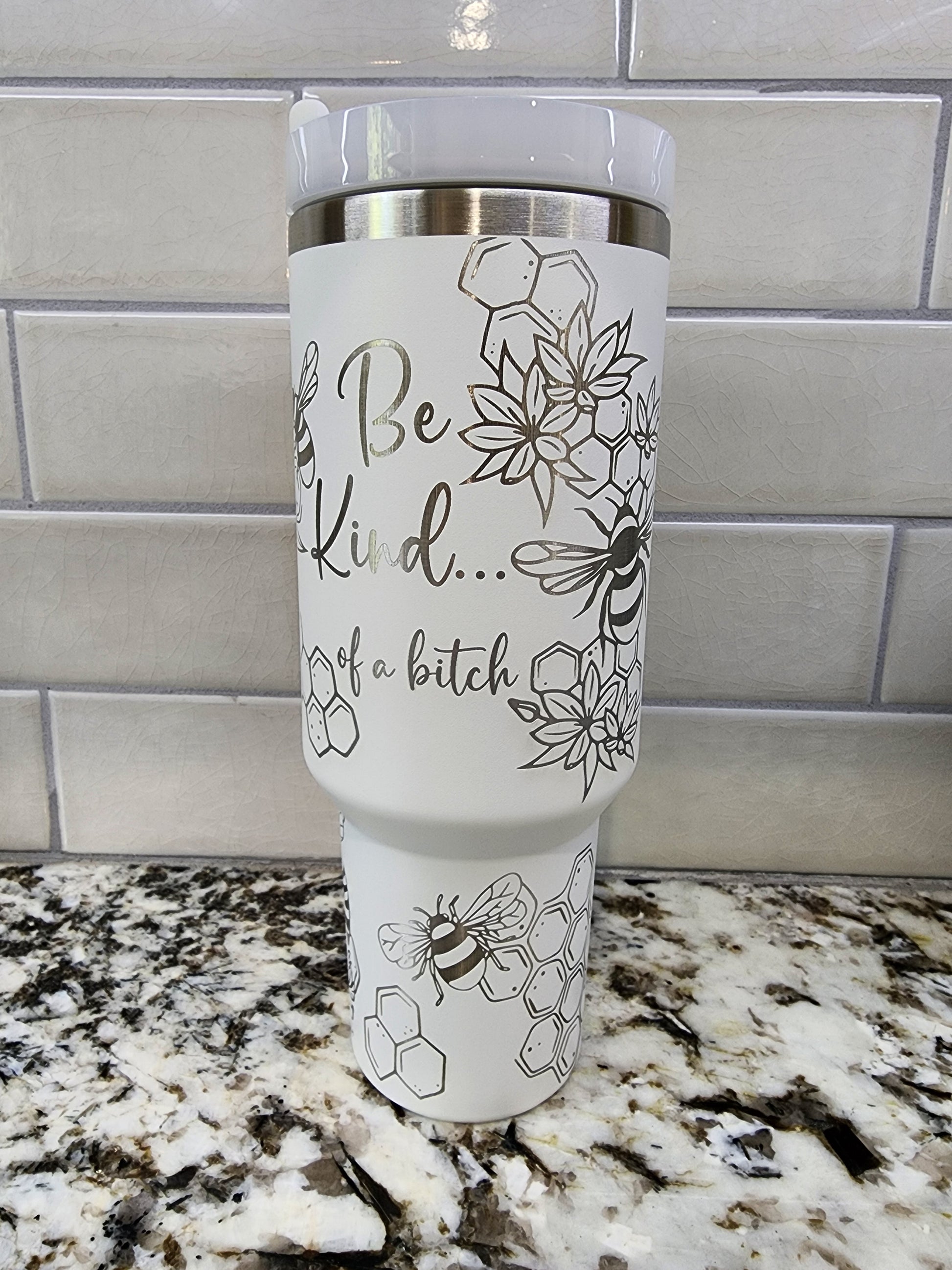 Honey Bee Themed Engraved 40oz Tumbler with Saying "Be Kind of a Bitch" Custom Insulated Travel Mug | Unique Bee Lover Gift