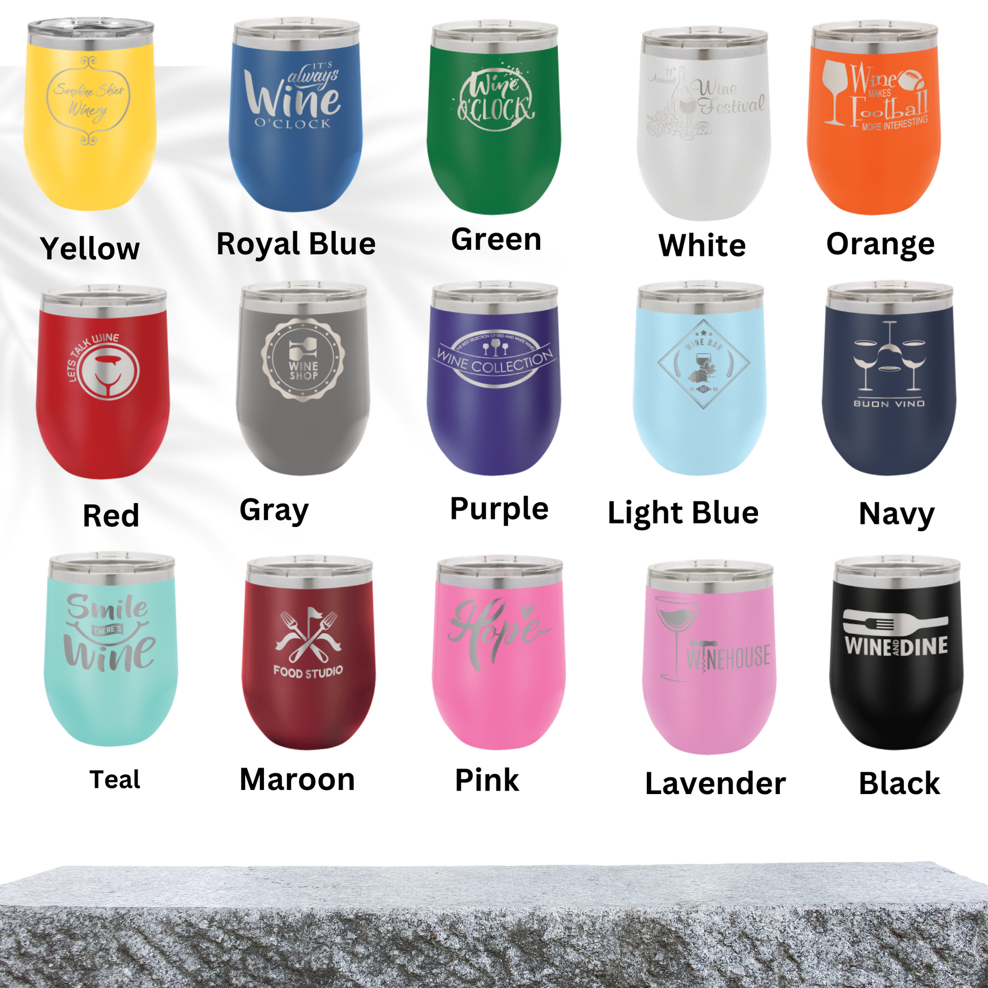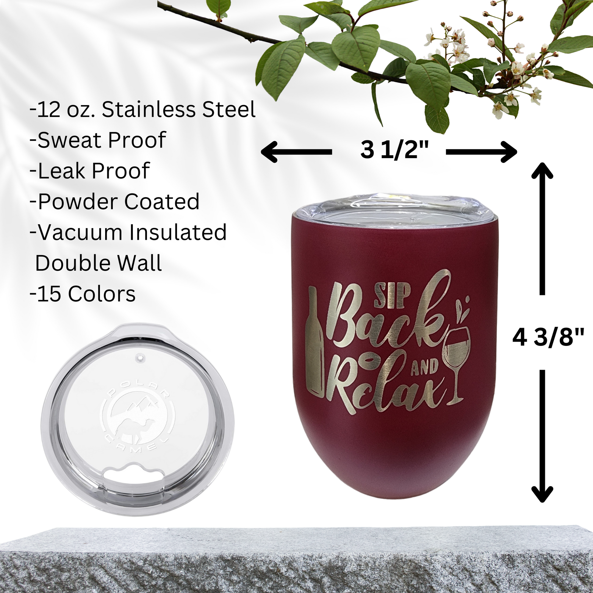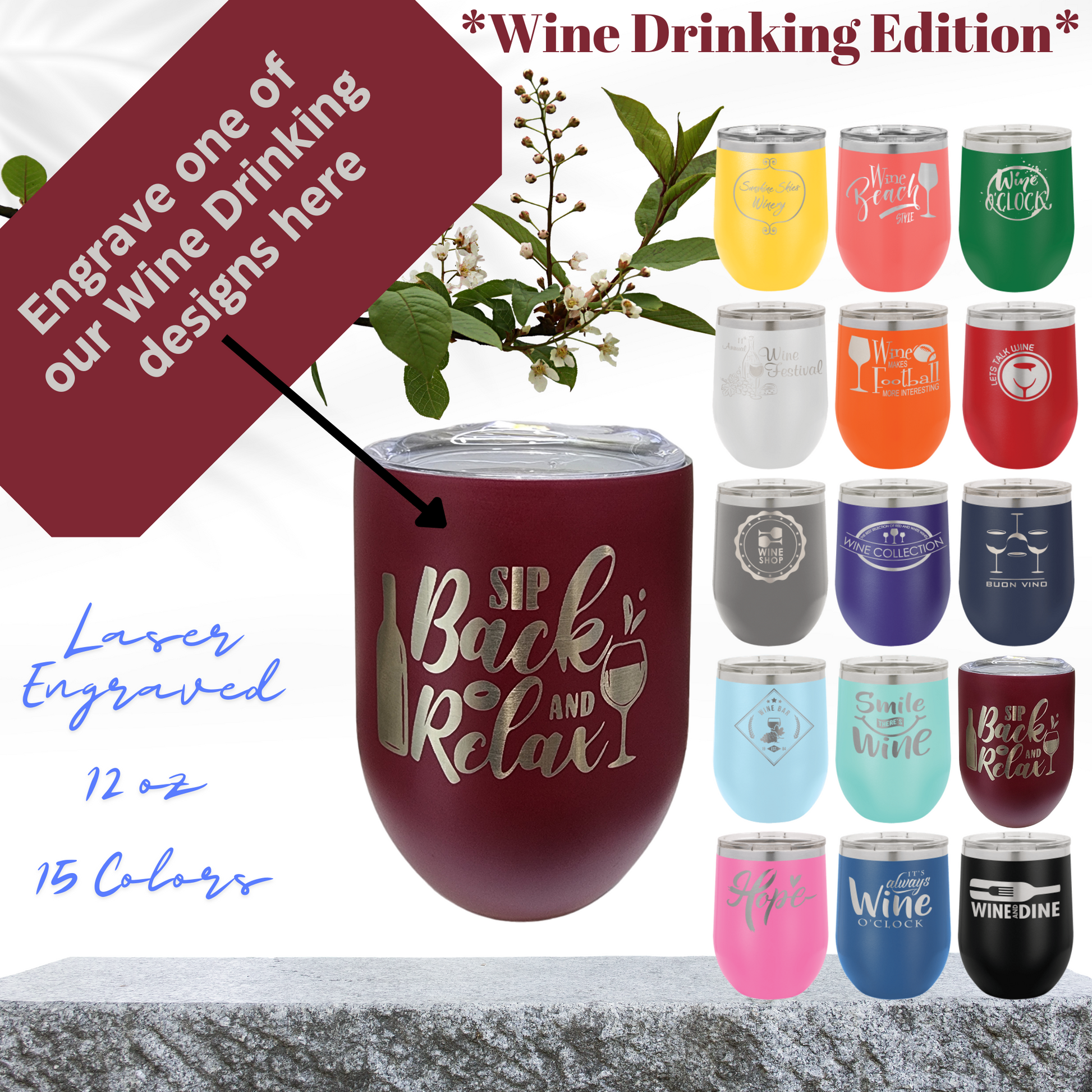 Wine Drinking Edition-12oz Laser Engraved Wine Tumbler: "Sip Happens"